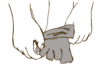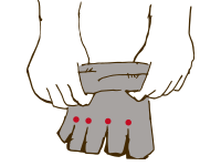 ②5本、すべての指がまっすぐになるまで深く履きこんでください。